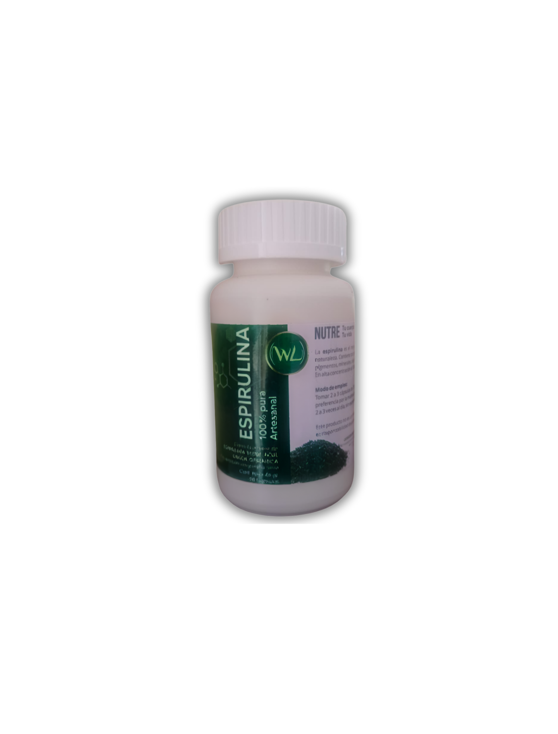 Espirulina Cruda-Orgánica-Cosecha Artesanal/Frasco con 90 Cápsulas/ 50 Puntos